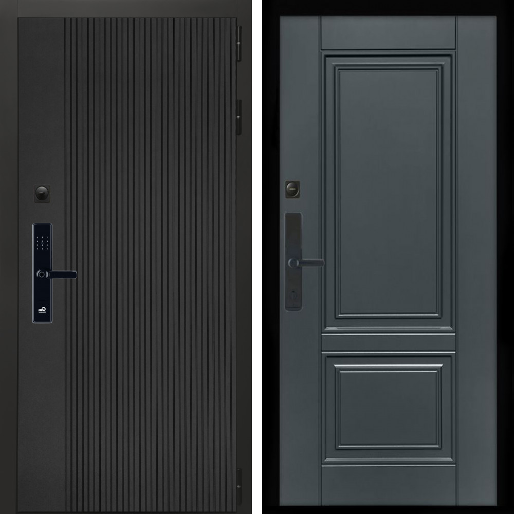 Входная дверь Inteko Вертикаль Блек SMART + ФЛ-117 с полосками графит