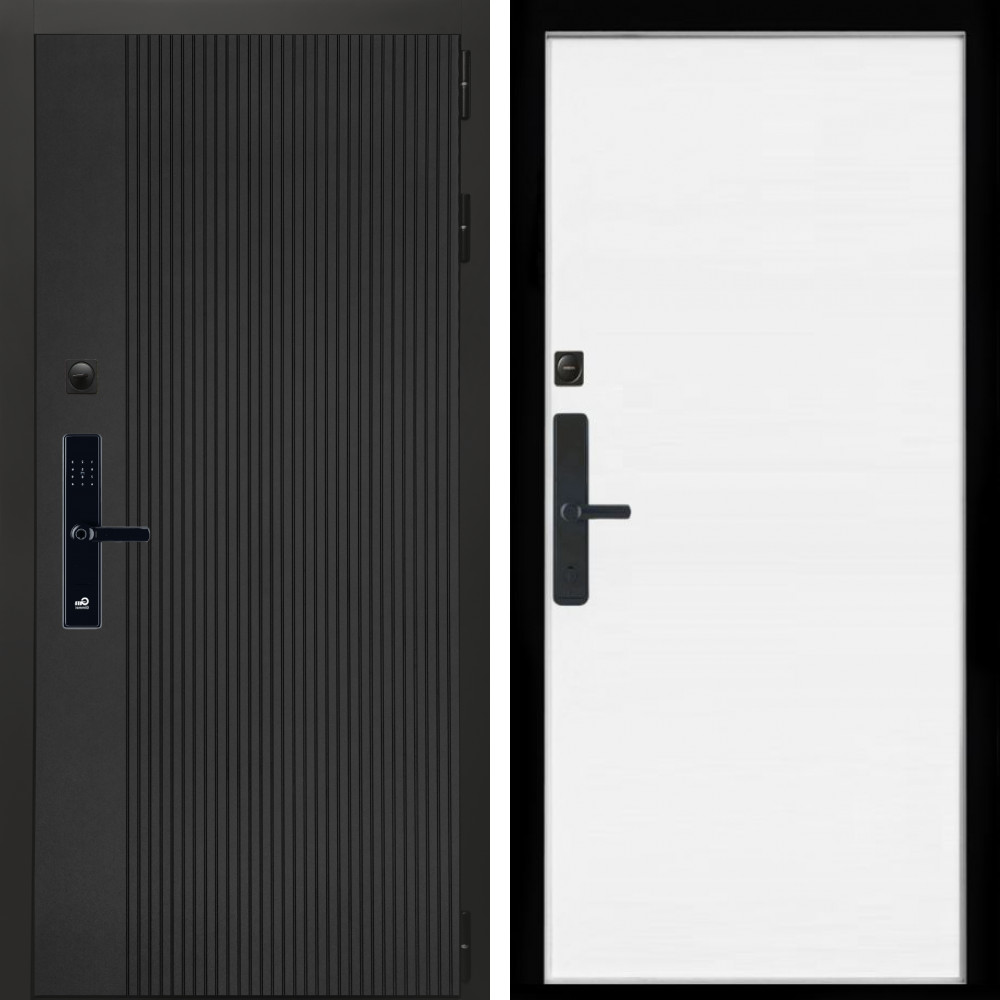 Входная дверь Inteko Вертикаль Блек SMART + Гладкая белый матовый
