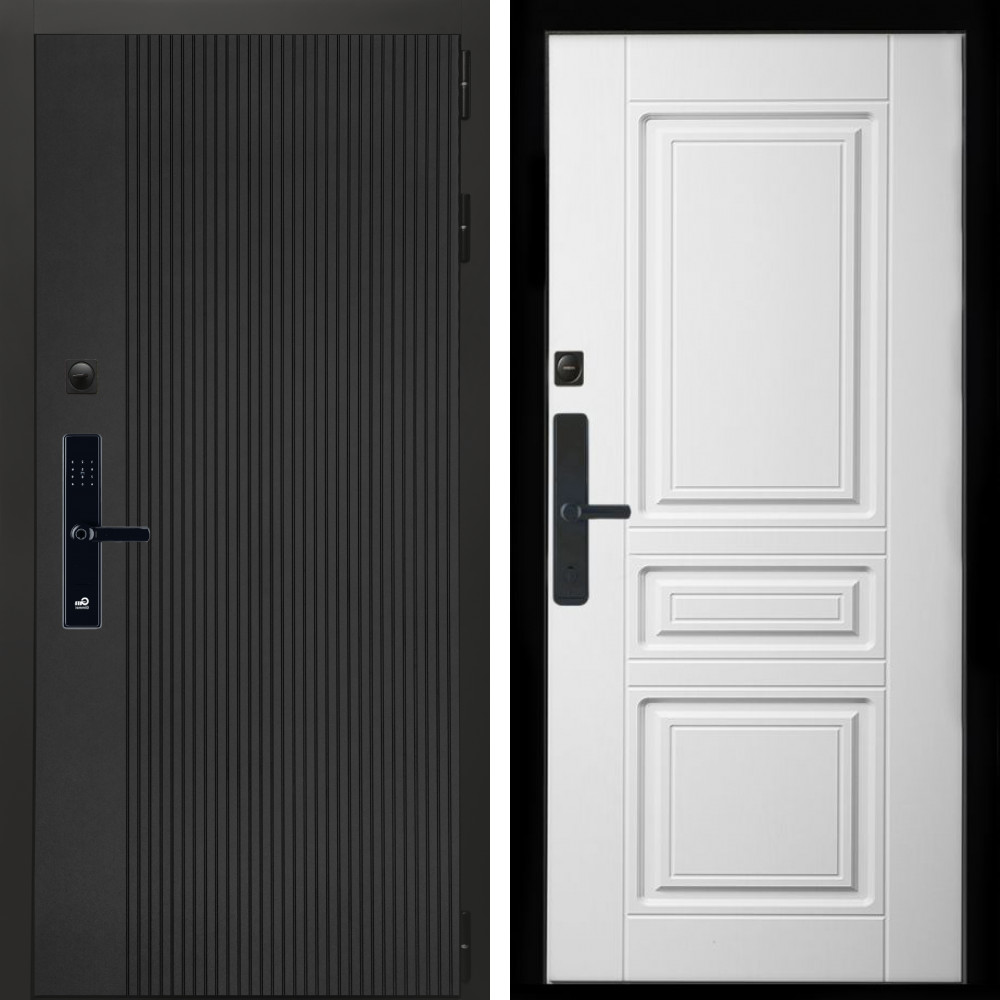 Входная дверь Inteko Вертикаль Блек SMART + Классика белый матовый