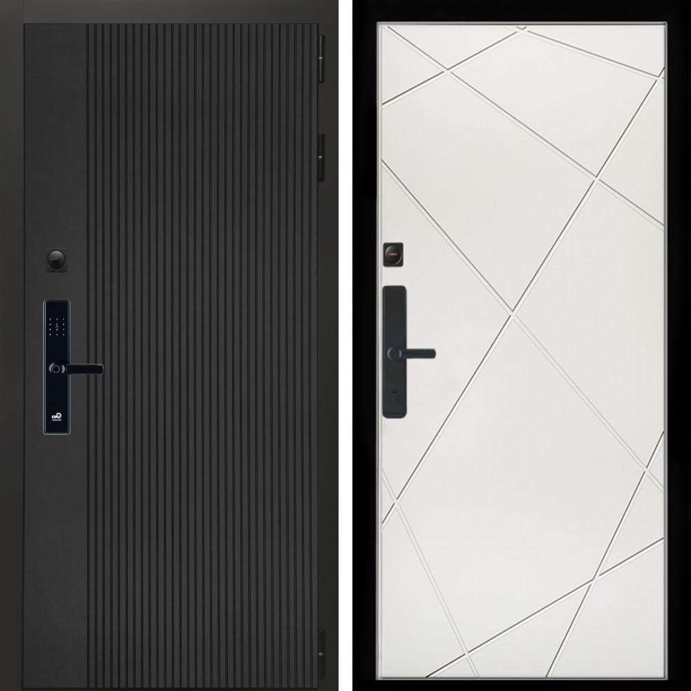 Входная дверь Inteko Вертикаль Блек SMART + Лучи белый