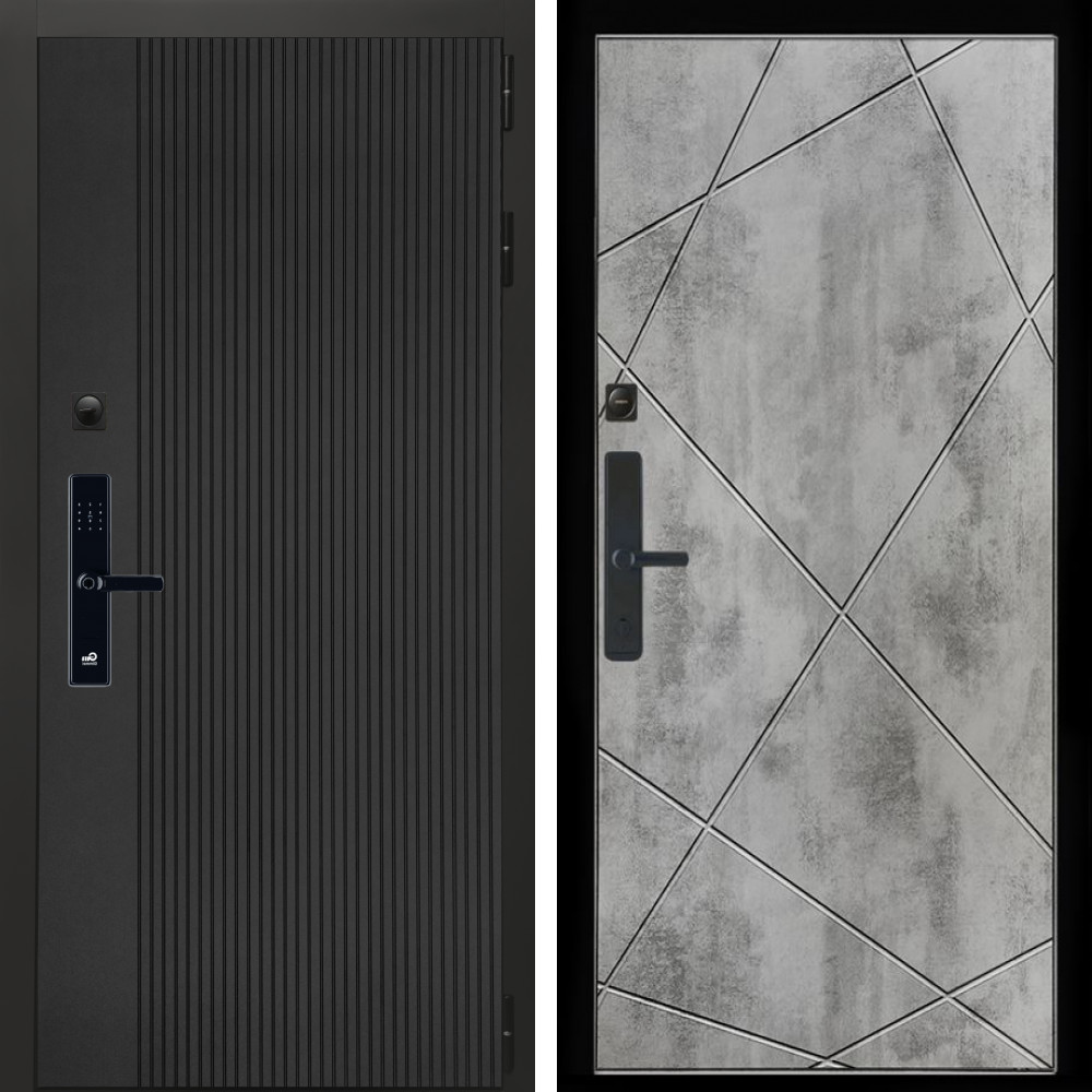 Входная дверь Inteko Вертикаль Блек SMART + Лучи бетон светлый