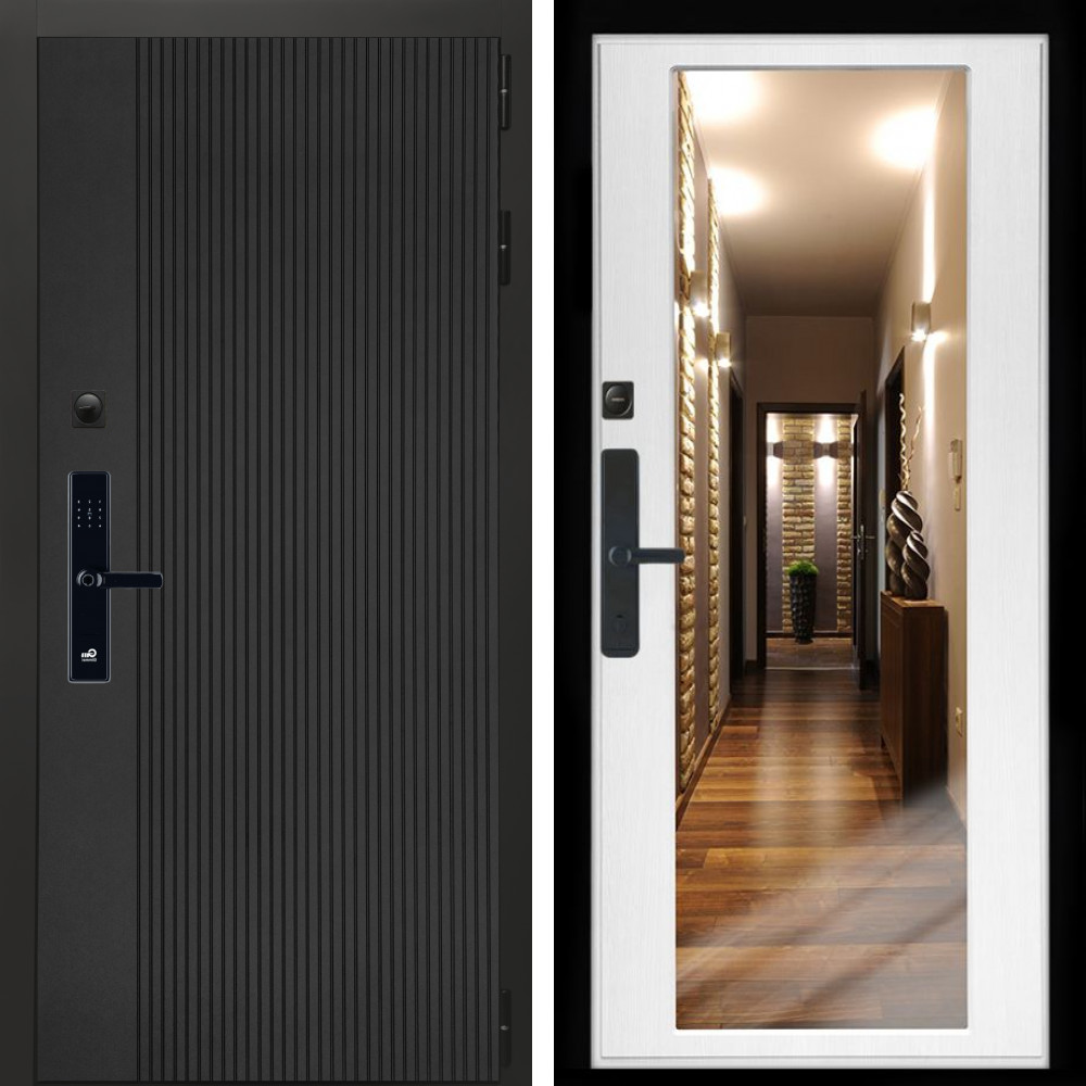 Входная дверь Inteko Вертикаль Блек SMART + Зеркало беленый дуб