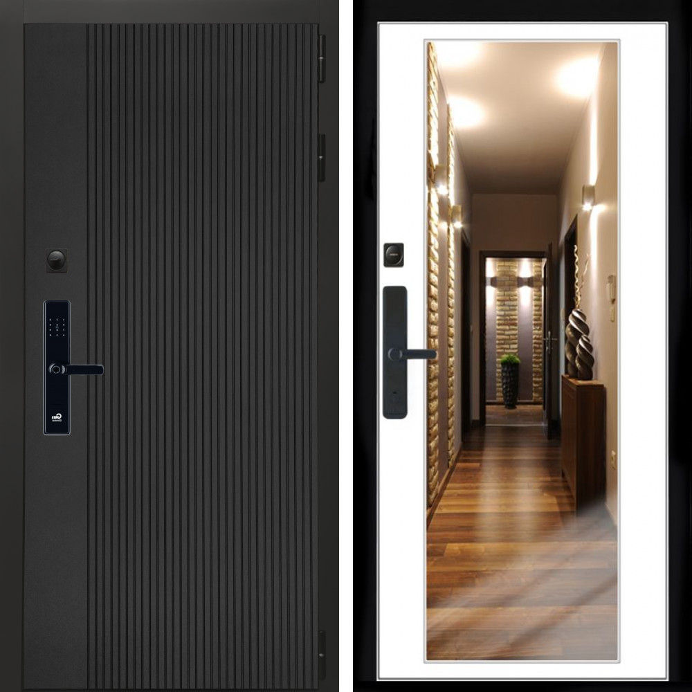 Входная дверь Inteko Вертикаль Блек SMART + Зеркало белый софт