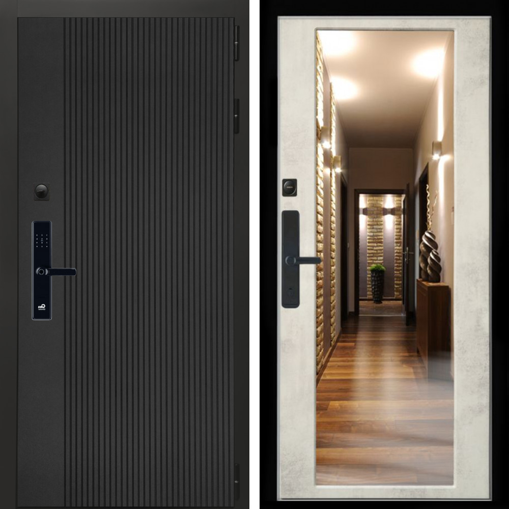 Входная дверь Inteko Вертикаль Блек SMART + Зеркало бетон светлый