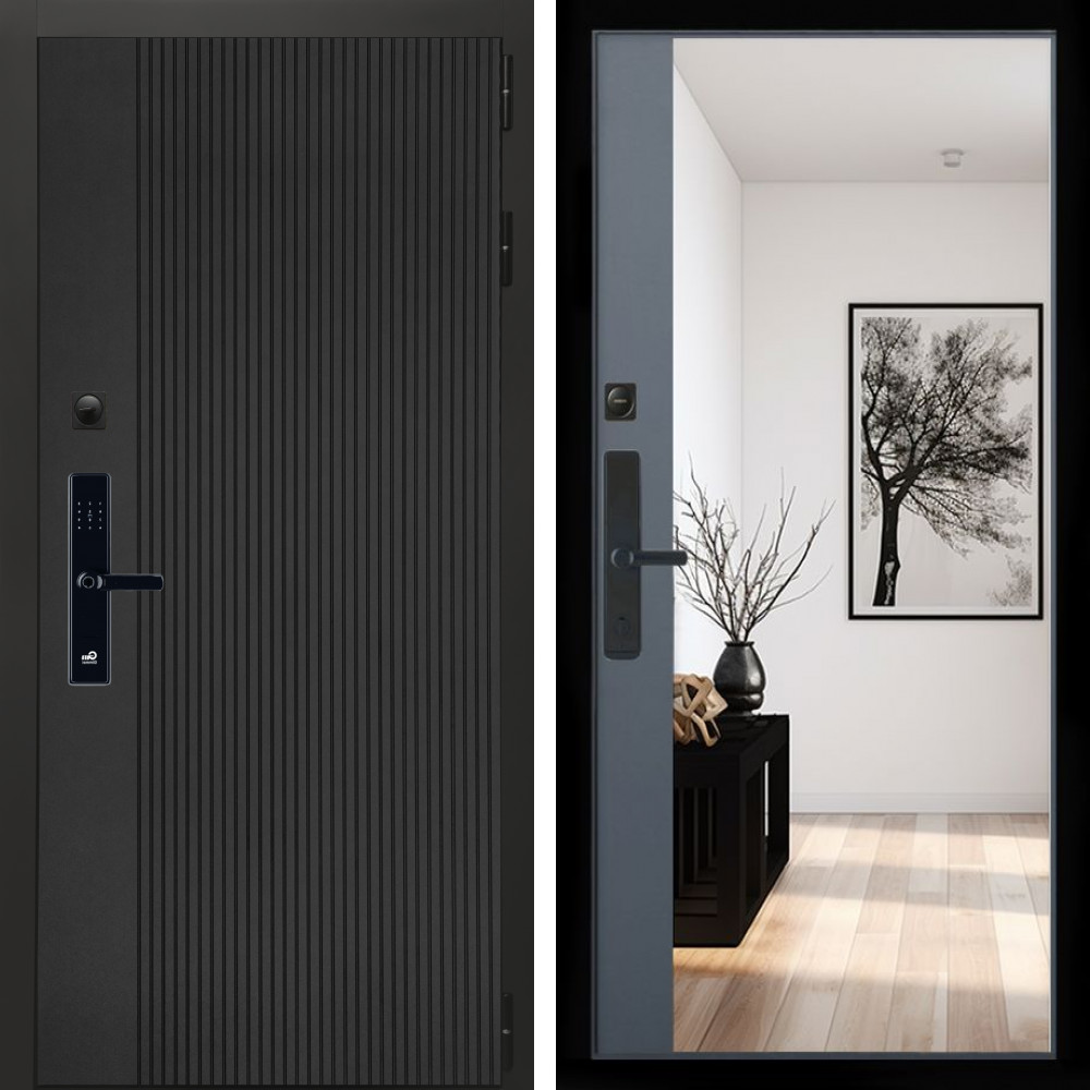 Входная дверь Inteko Вертикаль Блек SMART + Зеркало панорама Графит