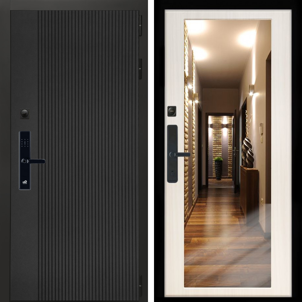 Входная дверь Inteko Вертикаль Блек SMART + Зеркало сандал белый