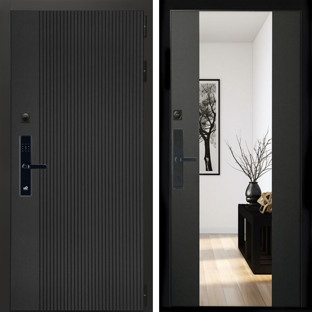Входная дверь Inteko Вертикаль Блек SMART + Зеркало сб-16 черный кварц