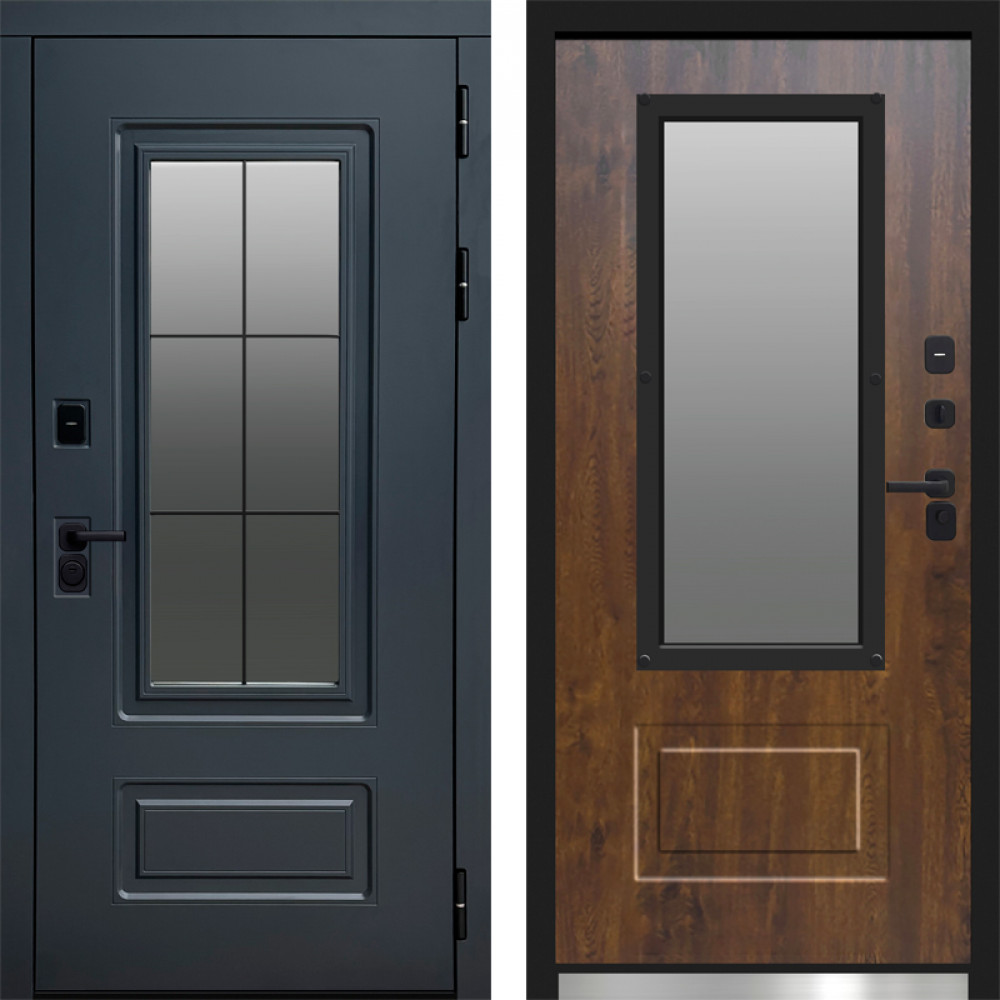 Входная дверь • Габаритные размеры: 2050x860 мм, 2050x960 мм • Металл 1.8мм. Черная шагрень • Внешнее покрытие: МДФ 12 мм. • Толщина полотна: 115 мм. • Толщина коробки: 120 мм. • Короб закрытого типа, утепленный • Уплотнитель: 3 контура • Два вертикальных ребра жесткости • ЭЛЕКТРОННЫЙ ЗАМОК НА ВЫБОР • Замок дополнительный: Гардиан 6001 • Врезная броненакладка • Пазы на коробке под доборы • Независимая задвижка есть • Фурнитура ЧЕРНАЯ