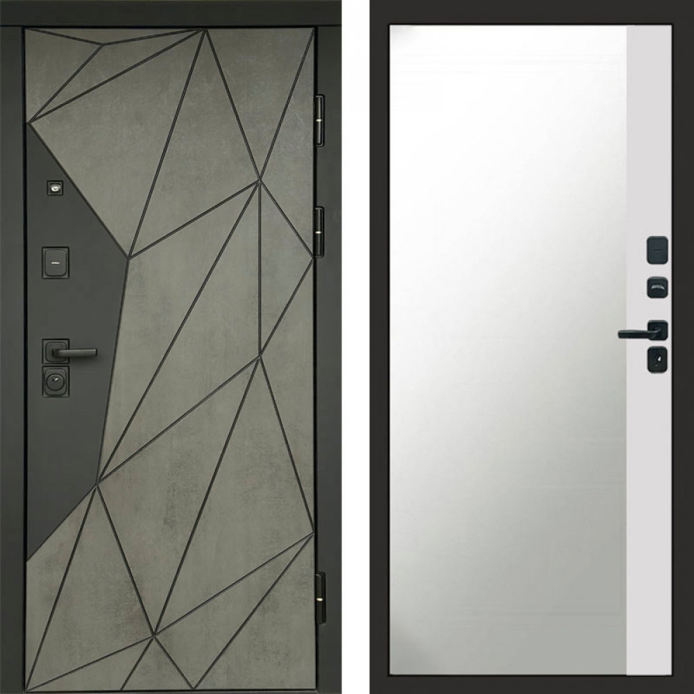 Входная дверь Termo-Door Геометрия Бетон - Зеркало Фацет Белый софт
