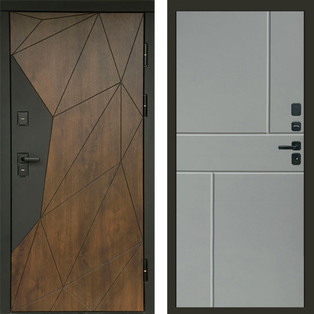 Входная дверь Termo-Door Геометрия Дуб - Горизонт Grey софт