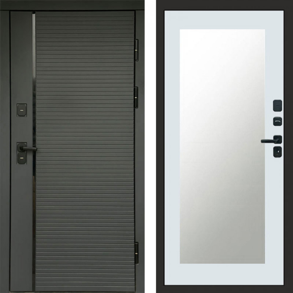 Входная дверь Termo-Door Графит Line - Зеркало Триумф Белый софт