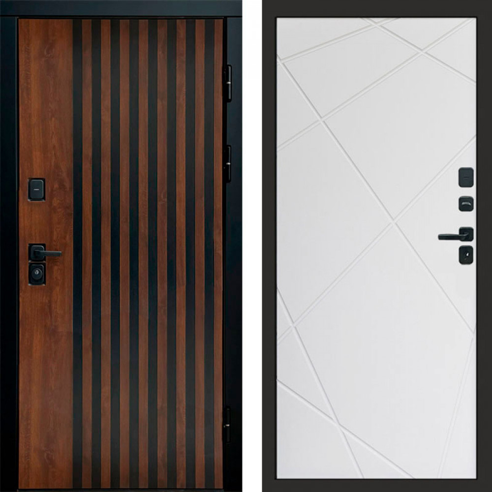 Входная дверь • Габаритные размеры: 2050x860 мм, 2050x960 мм • Металл 1.8мм. Черная шагрень • Внешнее покрытие: МДФ 12 мм. • Толщина полотна: 115 мм. • Толщина коробки: 120 мм. • Короб закрытого типа, утепленный • Уплотнитель: 3 контура • Два вертикальных ребра жесткости • ЭЛЕКТРОННЫЙ ЗАМОК НА ВЫБОР • Замок дополнительный: Гардиан 6001 • Врезная броненакладка • Пазы на коробке под доборы • Независимая задвижка есть • Фурнитура ЧЕРНАЯ