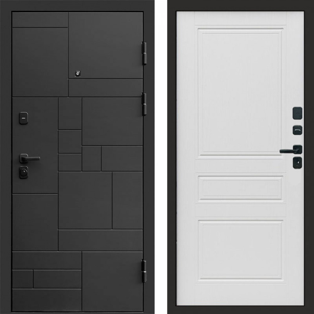 Входная дверь Лабиринт Платинум с Зеркалом 32 тонированным - Белый рельеф софт