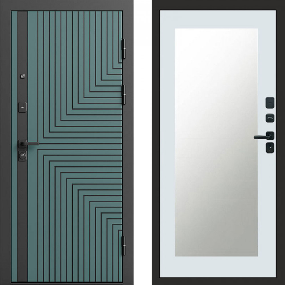 Входная дверь Termo-Door Квантум velutto verde - Зеркало Триумф Белый софт