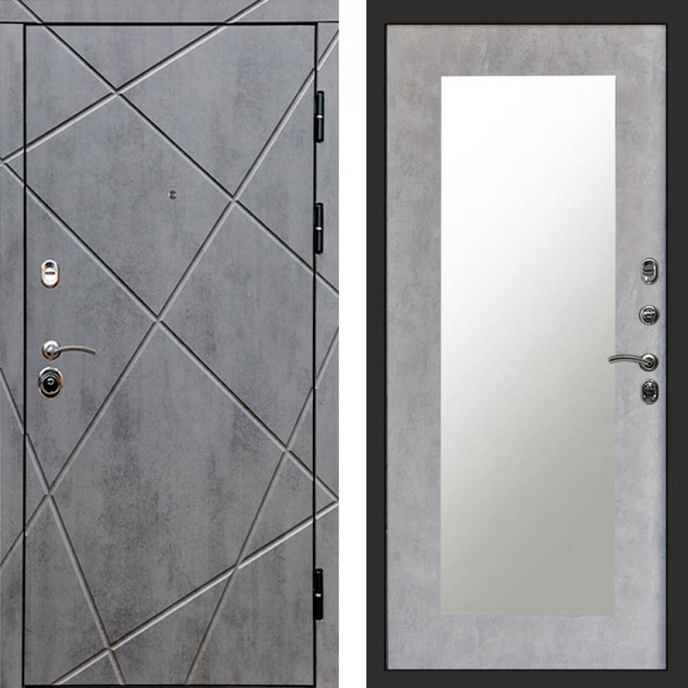 Входная дверь Termo-Door Лучи Бетон Темный - Зеркало Триумф бетон светлый