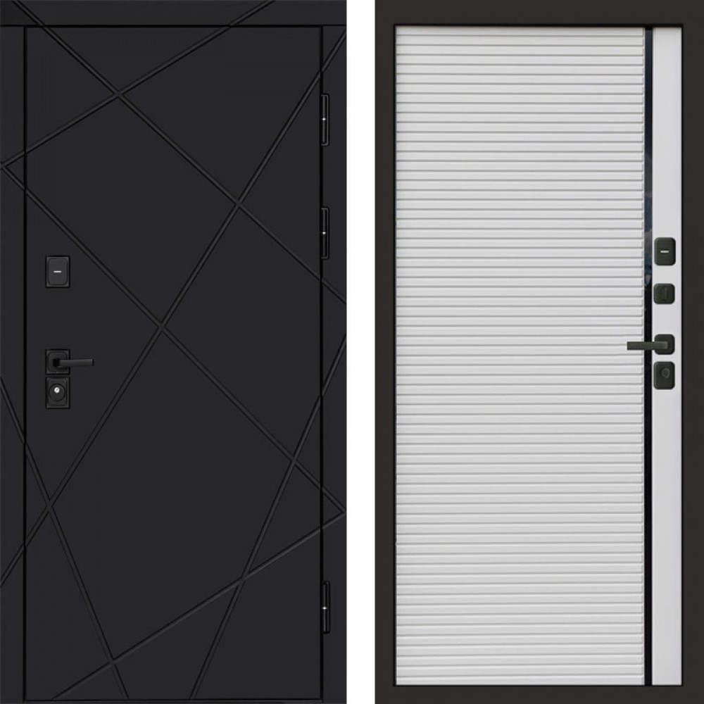 Входная дверь Агата Вайт (Бел мат, черное стекло) + Зеркало сандал белый
