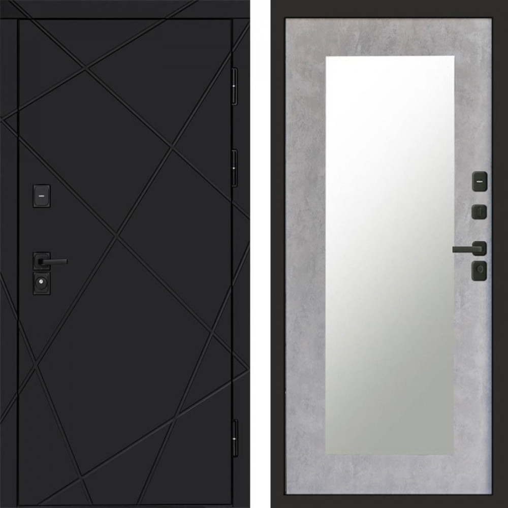 Входная дверь Termo-Door Лучи Black - Зеркало Триумф бетон светлый