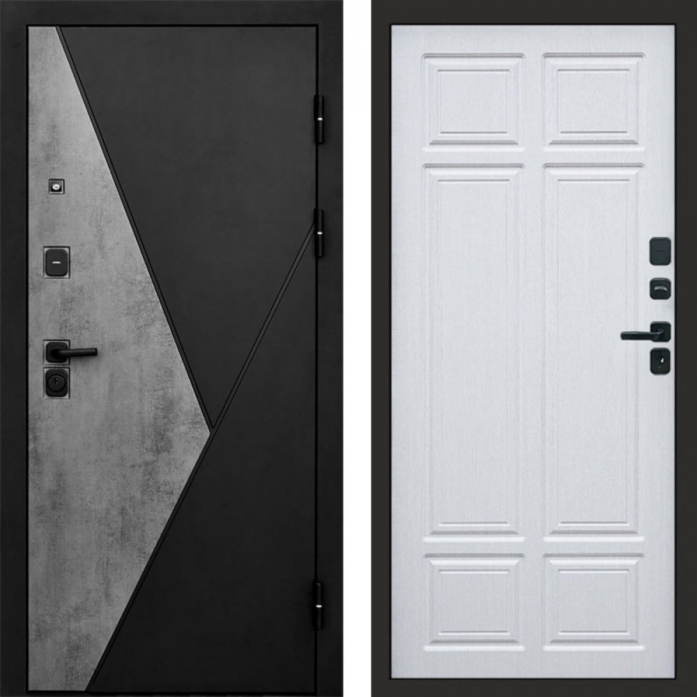 Входная дверь Лофт Бетон Светлый + Эверест нерж белый матовый