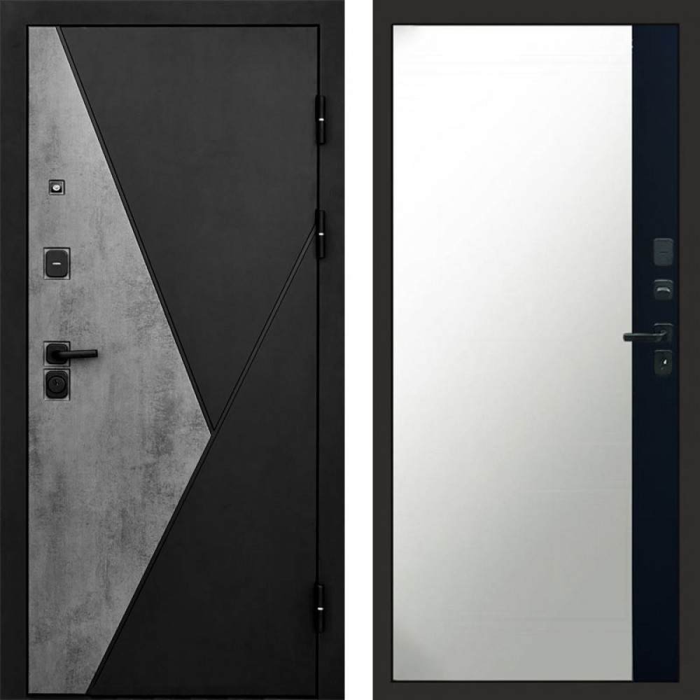 Входная дверь Termo-Door Матрикс Бетон - Зеркало Фацет Черный кварц+тонировка серая