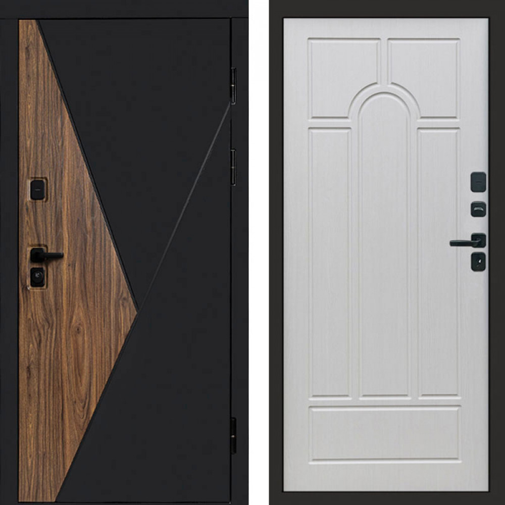 Входная дверь • Габаритные размеры: 2050x860 мм, 2050x960 мм • Металл 1.8мм. Черная шагрень • Внешнее покрытие: МДФ 12 мм. • Толщина полотна: 115 мм. • Толщина коробки: 120 мм. • Короб закрытого типа, утепленный • Уплотнитель: 3 контура • Два вертикальных ребра жесткости • ЭЛЕКТРОННЫЙ ЗАМОК НА ВЫБОР • Замок дополнительный: Гардиан 6001 • Врезная броненакладка • Пазы на коробке под доборы • Независимая задвижка есть • Фурнитура ЧЕРНАЯ
