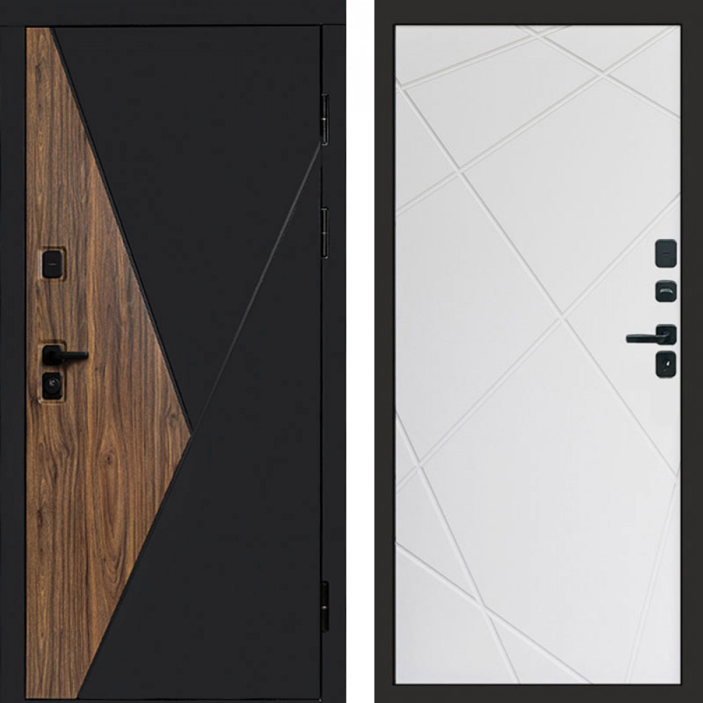 Входная дверь • Габаритные размеры: 2050x860 мм, 2050x960 мм • Металл 1.8мм. Черная шагрень • Внешнее покрытие: МДФ 12 мм. • Толщина полотна: 115 мм. • Толщина коробки: 120 мм. • Короб закрытого типа, утепленный • Уплотнитель: 3 контура • Два вертикальных ребра жесткости • ЭЛЕКТРОННЫЙ ЗАМОК НА ВЫБОР • Замок дополнительный: Гардиан 6001 • Врезная броненакладка • Пазы на коробке под доборы • Независимая задвижка есть • Фурнитура ЧЕРНАЯ