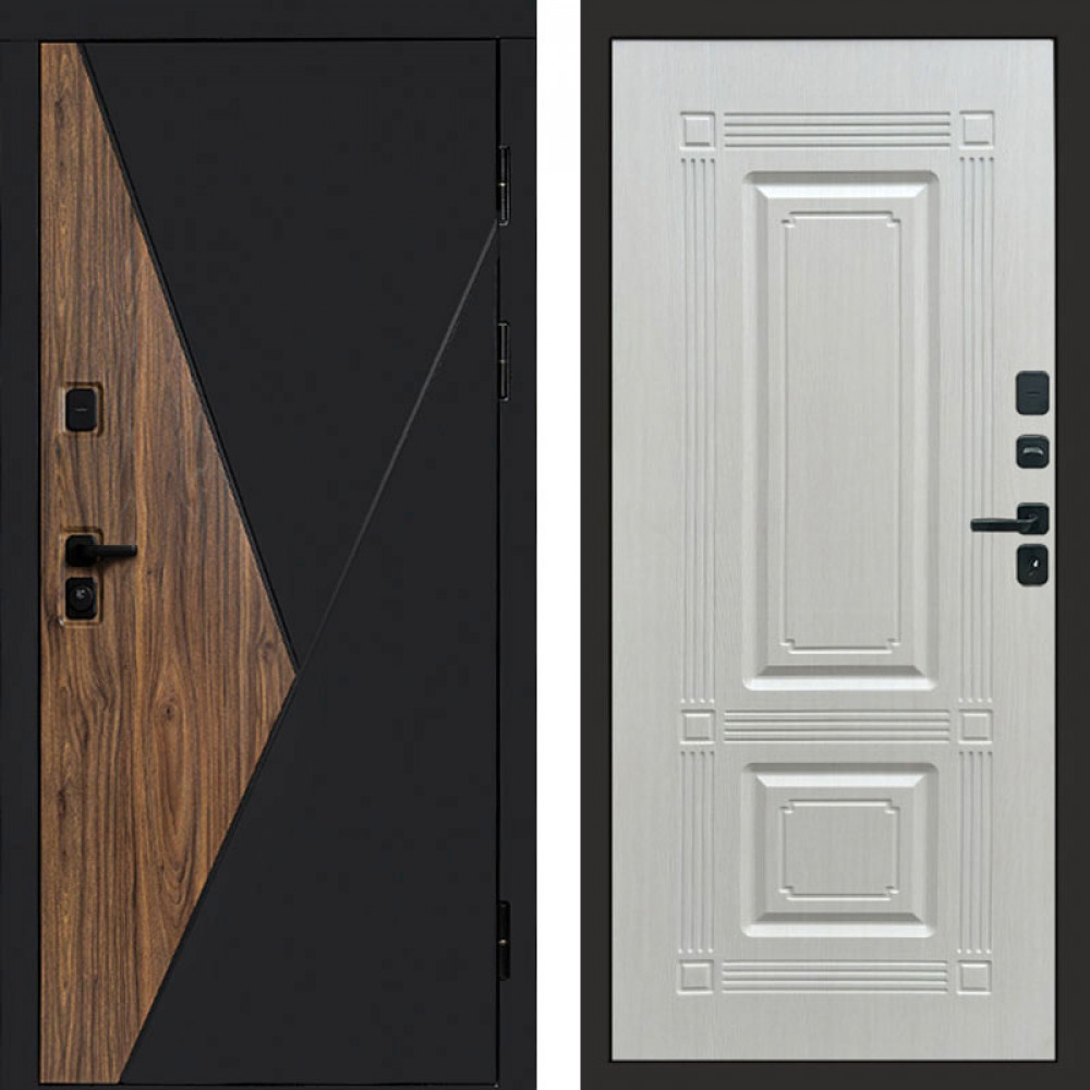 Входная дверь • Габаритные размеры: 2050x860 мм, 2050x960 мм • Металл 1.8мм • Внешнее покрытие: МДФ 16 мм. • Толщина полотна: 115 мм. • Толщина коробки: 120 мм. • Короб закрытого типа, утепленный • Уплотнитель: 3 контура • Два вертикальных ребра жесткости • Замок основной: Гардиан 6211 с блокировкой язычка • Замок дополнительный: Гардиан 6001 • Врезная броненакладка • Пазы на коробке под доборы • Независимая задвижка есть • Фурнитура Черная