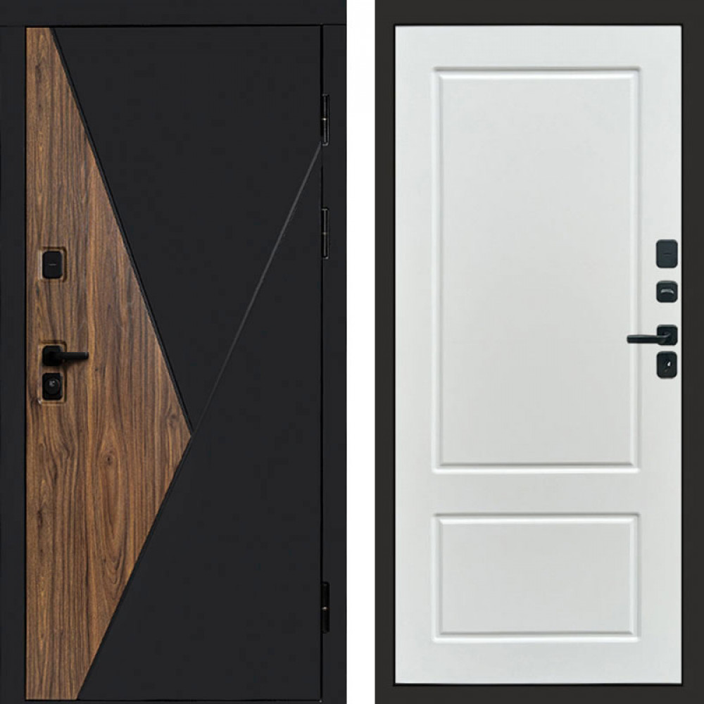 Входная дверь • Габаритные размеры: 2050x860 мм, 2050x960 мм • Металл 1.5мм. • Внешнее покрытие: МДФ 12 мм. • Цвет покрытия: Графит. • Толщина полотна: 100 мм. • Толщина коробки: 105 мм. • Окрас короба:Черная шагрень. • Короб закрытого типа, утепленный. • Уплотнитель: 3 контура. • Два вертикальных ребра жесткости. • Замок основной: Guardian 3211 (цилиндровый). • Замок дополнительный: Guardian 300 • Врезная броненакладка. • Независимая задвижка есть. • Фурнитура Черная.