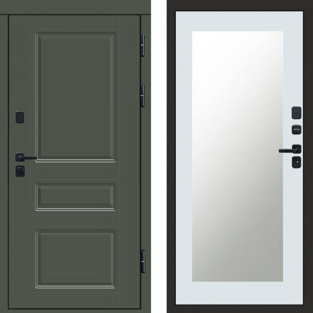 Входная дверь Termo-Door Орегон Грин - Зеркало Триумф Белый софт