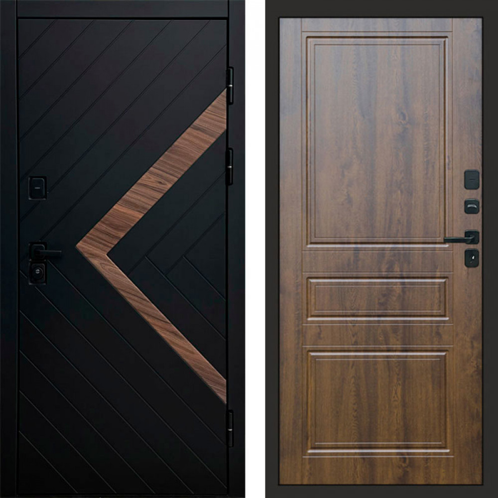 Входная дверь • Габаритные размеры: 2050x860 мм, 2050x960 мм • Металл 1.5мм. • Внешнее покрытие: МДФ 12 мм. • Цвет покрытия: Розвуд. • Толщина полотна: 100 мм. • Толщина коробки: 105 мм. • Окрас короба:Черная шагрень. • Короб закрытого типа, утепленный. • Уплотнитель: 3 контура. • Два вертикальных ребра жесткости. • Замок основной: Guardian 3211 (цилиндровый). • Замок дополнительный: Guardian 300 • Врезная броненакладка. • Независимая задвижка есть. • Фурнитура Черная.