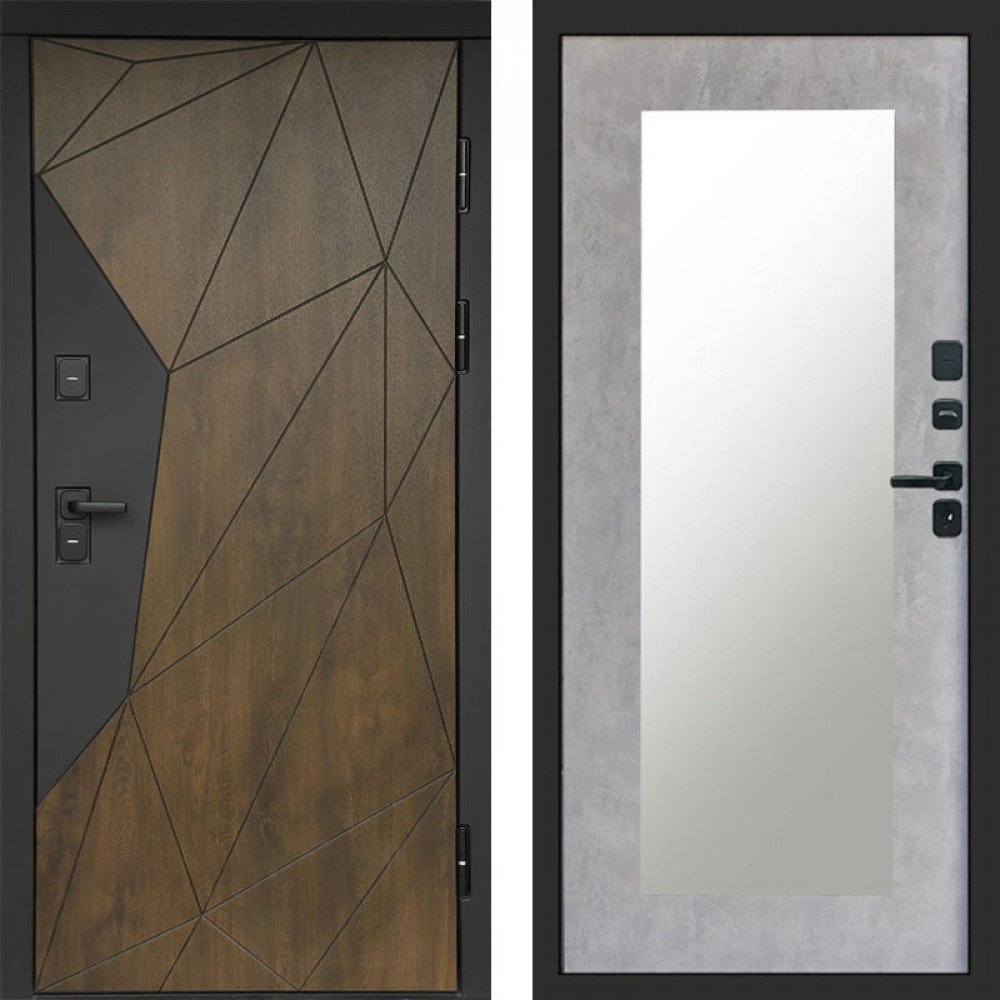 Входная дверь Termo-Door Премиум Геометрия Дуб - Зеркало Триумф бетон светлый