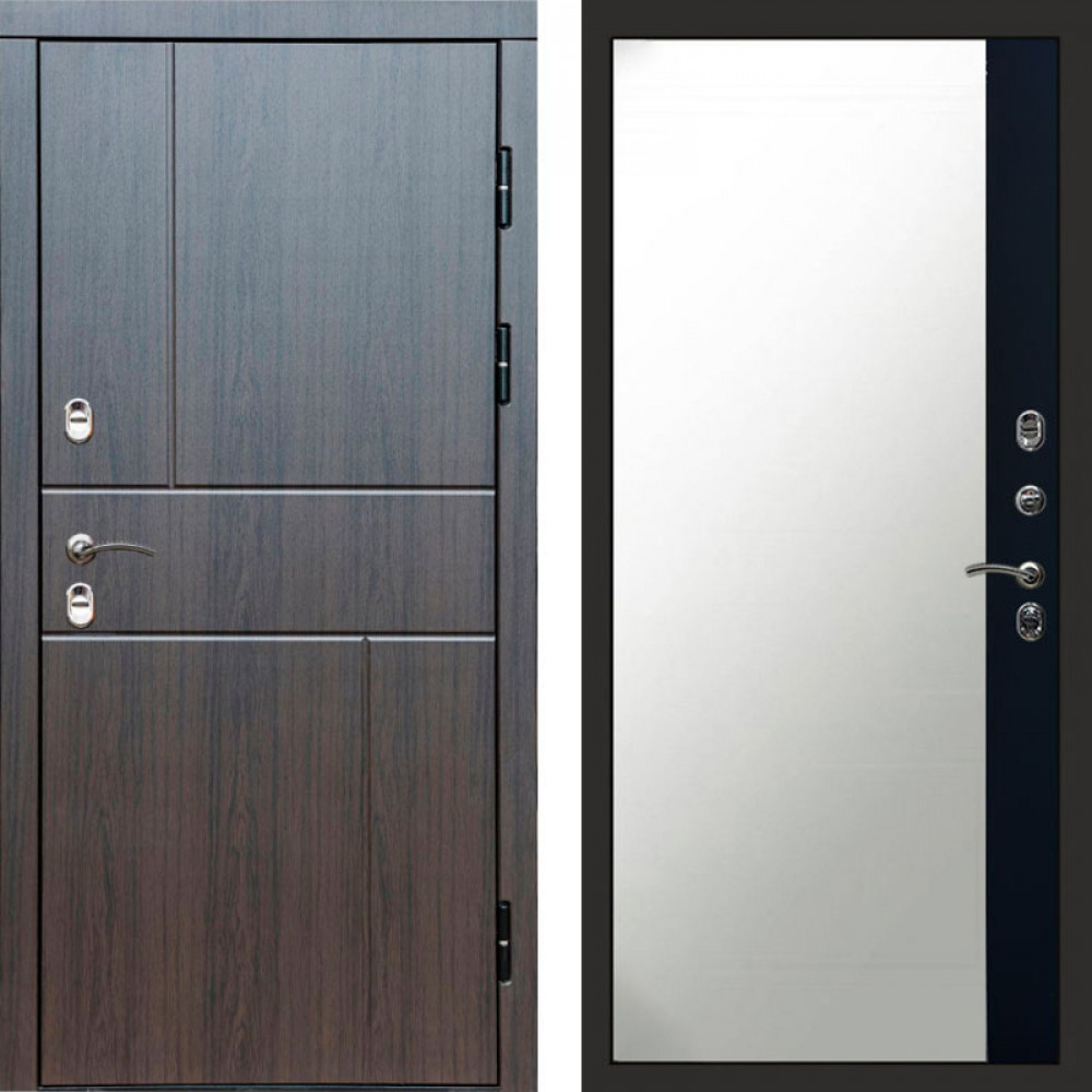 Входная дверь Termo-Door Премиум Винорит Вертикаль Венге - Зеркало Фацет Черный кварц+тонировка серая