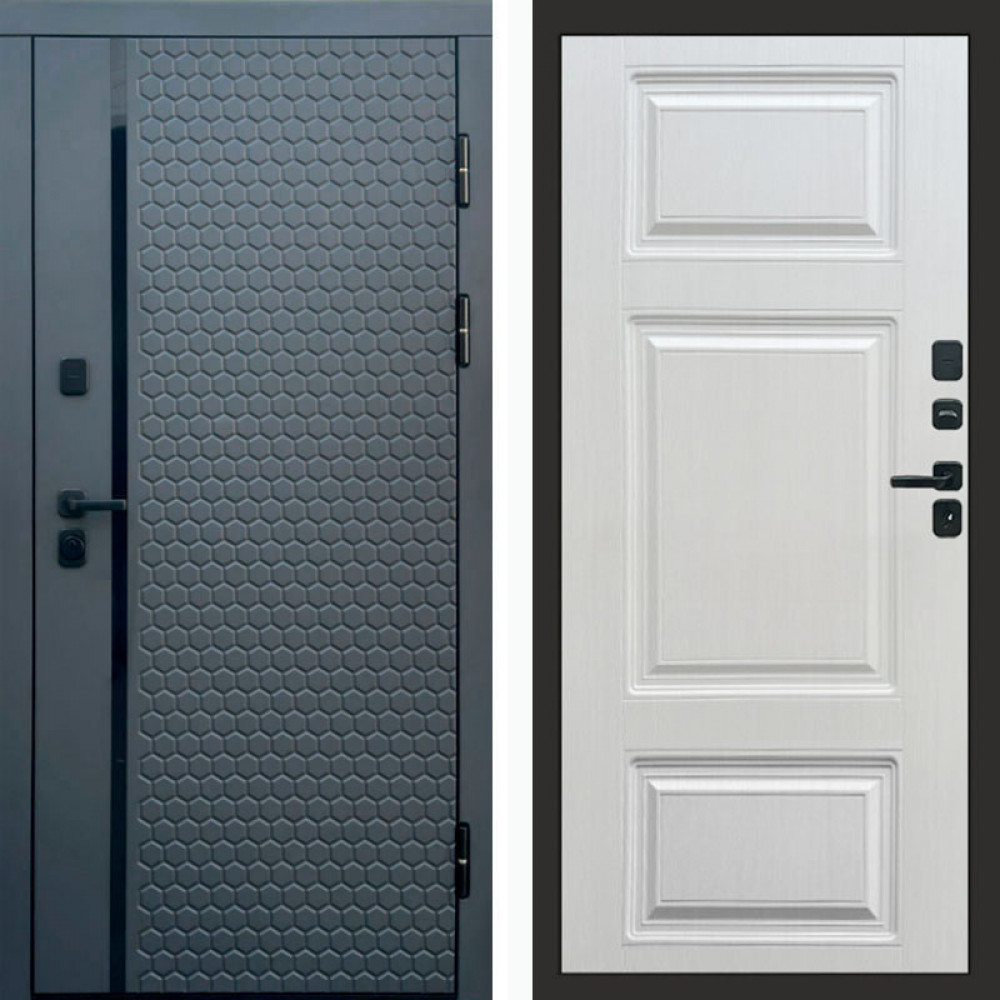 Входная дверь Бульдорс TRUST MASS МР Черный муар металлик D-4/Эмаль светло серая 9SD-2