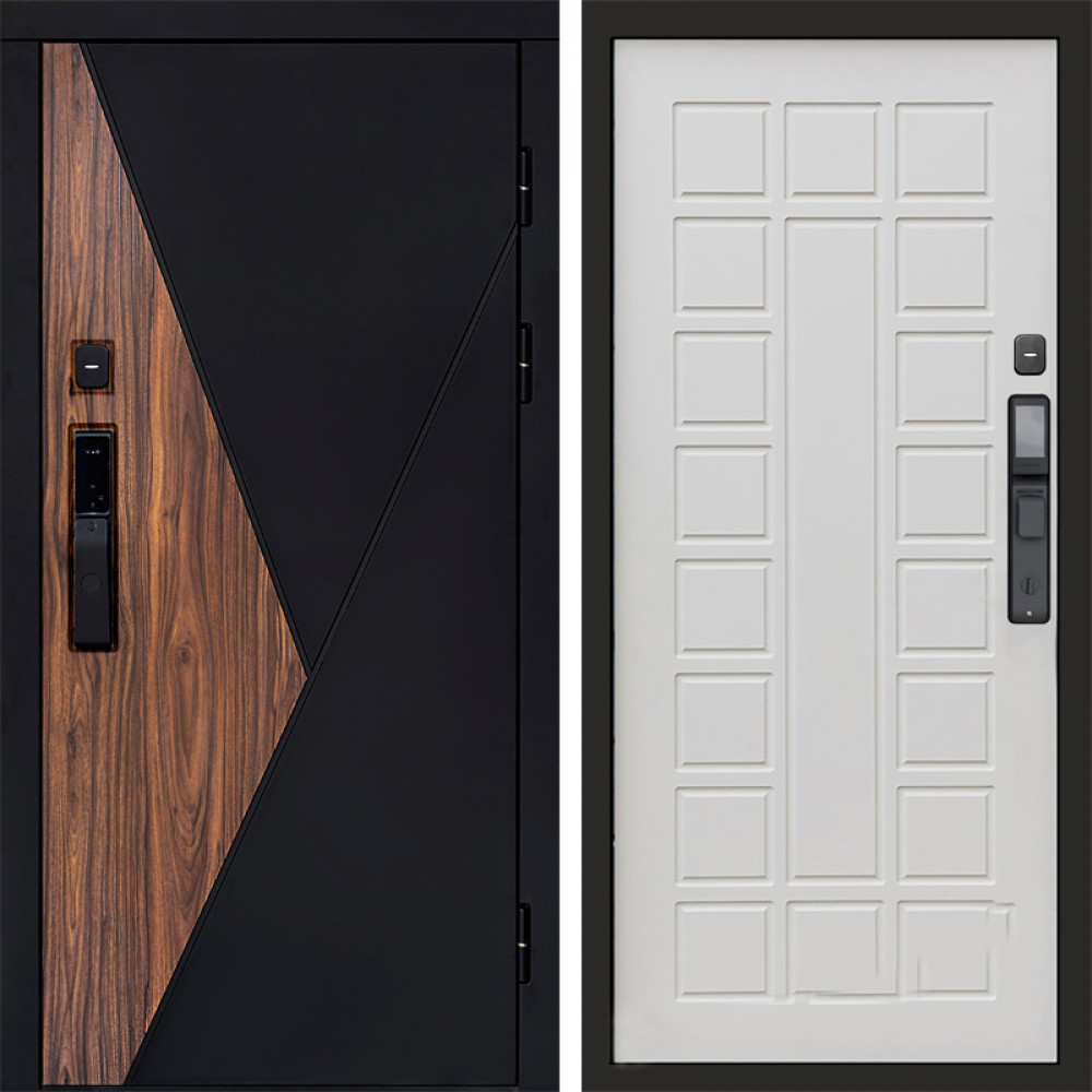 Входная дверь • Габаритные размеры: 2050x860 мм, 2050x960 мм • Металл 1.8мм • Внешнее покрытие: МДФ 16 мм. • Толщина полотна: 115 мм. • Толщина коробки: 120 мм. • Короб закрытого типа, утепленный • Уплотнитель: 3 контура • Два вертикальных ребра жесткости • Замок основной: Гардиан 6211 с блокировкой язычка • Замок дополнительный: Гардиан 6001 • Врезная броненакладка • Пазы на коробке под доборы • Независимая задвижка есть • Фурнитура ХРОМ