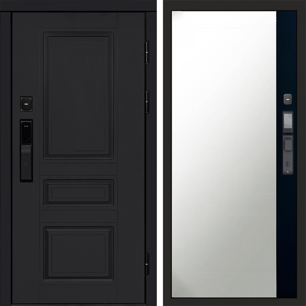 Входная дверь Termo-Door Смарт Орегон Black - Зеркало Фацет Черный кварц+тонировка серая