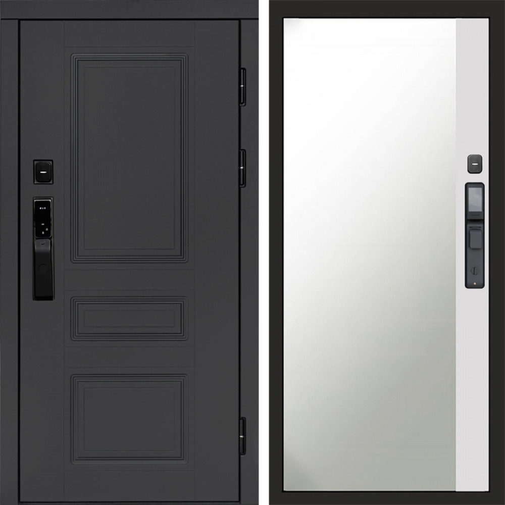 Входная дверь Termo-Door Смарт Орегон Графит - Зеркало Фацет Белый софт