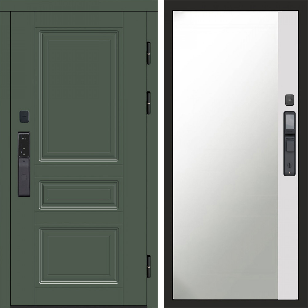 Входная дверь Termo-Door Смарт Орегон Green - Зеркало Фацет Белый софт