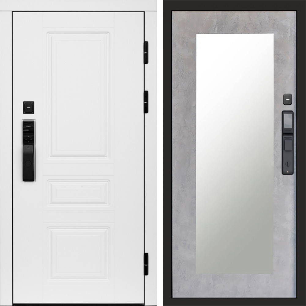 Входная дверь Termo-Door Смарт Орегон White - Зеркало Триумф бетон светлый