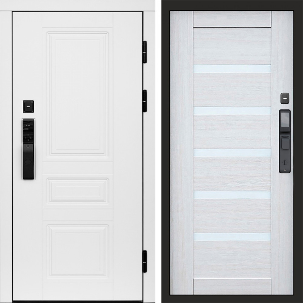 Входная дверь Termo-Door Смарт Орегон White - Зеркало Триумф Царга лиственница 4500 / 5500