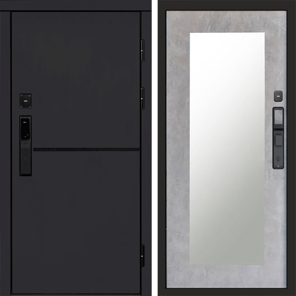 Входная дверь Termo-Door Смарт Тренд Black - Зеркало Триумф бетон светлый