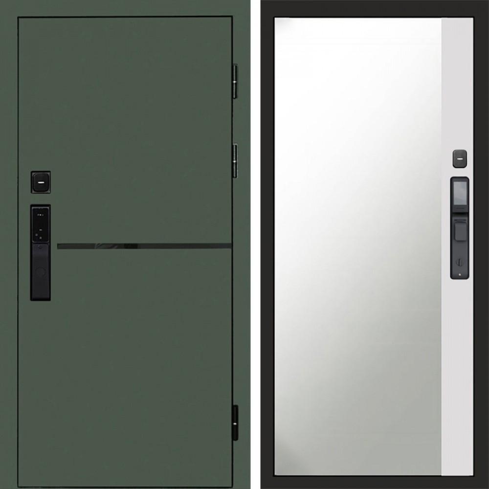 Входная дверь Termo-Door Смарт Тренд Green - Зеркало Фацет Белый софт