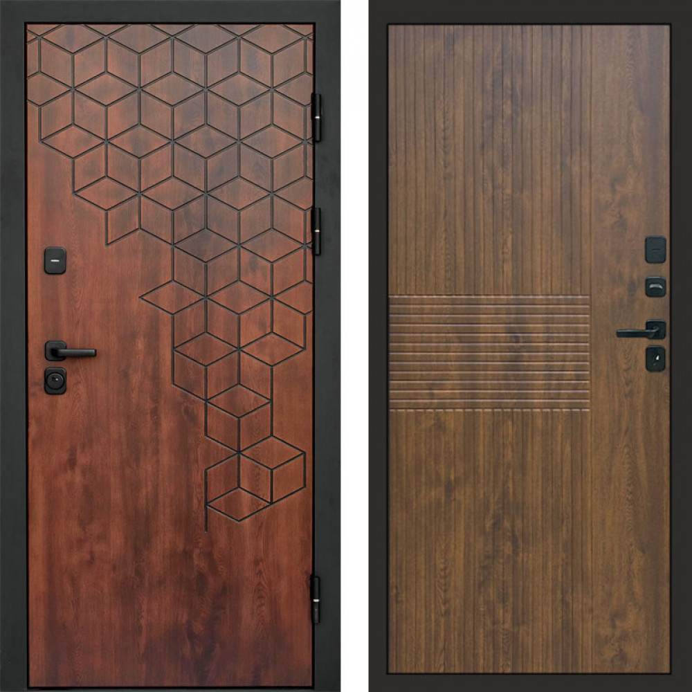 Входная дверь • Габаритные размеры: 2050x860 мм, 2050x960 мм • Металл 1.5мм. • Внешнее покрытие: МДФ 12 мм. • Цвет покрытия: Розвуд. • Толщина полотна: 100 мм. • Толщина коробки: 105 мм. • Окрас короба:Черная шагрень. • Короб закрытого типа, утепленный. • Уплотнитель: 3 контура. • Два вертикальных ребра жесткости. • Замок основной: Guardian 3211 (цилиндровый). • Замок дополнительный: Guardian 300 • Врезная броненакладка. • Независимая задвижка есть. • Фурнитура Черная.