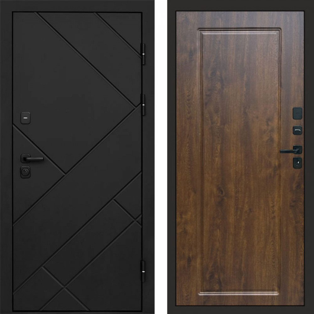 Входная дверь • Габаритные размеры: 2050x860 мм, 2050x960 мм • Металл 1.5мм. • Внешнее покрытие: МДФ 12 мм. • Цвет покрытия: Дуб американский/Черный кварц. • Толщина полотна: 100 мм. • Толщина коробки: 105 мм. • Окрас короба:Черная шагрень. • Короб закрытого типа, утепленный. • Уплотнитель: 3 контура. • Два вертикальных ребра жесткости. • Замок основной: Guardian 3211 (цилиндровый). • Замок дополнительный: Guardian 3001 (сувальдный). • Врезная броненакладка. • Независимая задвижка есть. • Фурнитура Черная.