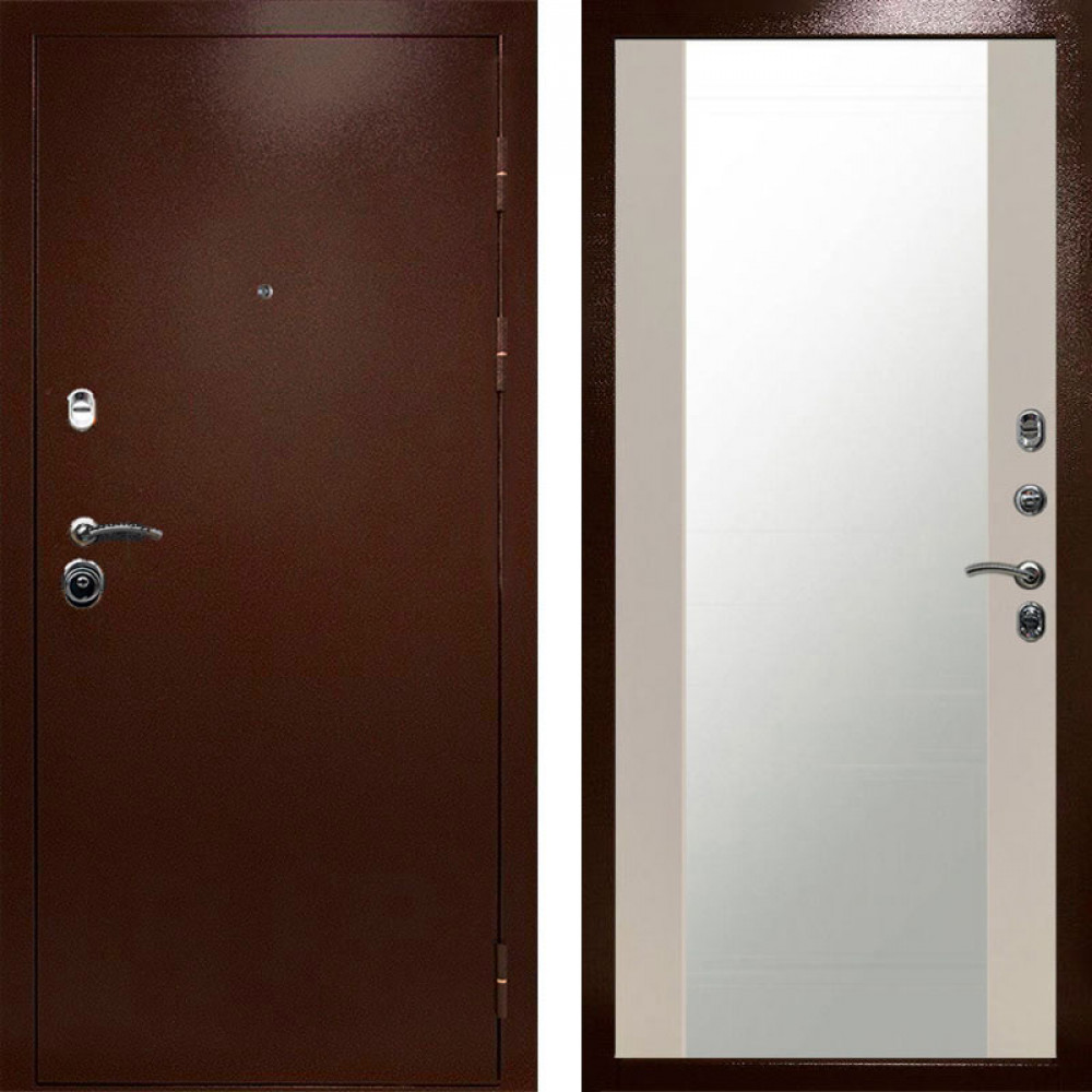 Входная дверь Termo-Door Техно Медь Антик - Зеркало Слоновая кость