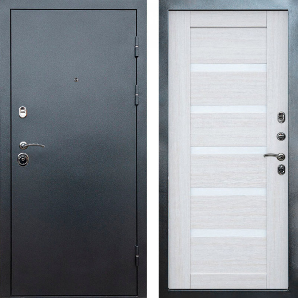 Входная дверь Termo-Door Техно Серебро Антик - Зеркало Триумф Царга лиственница 4500 / 5500