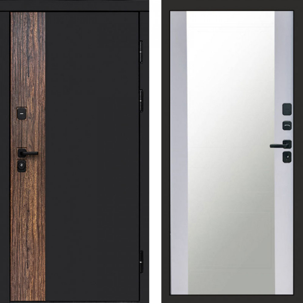 Входная дверь Лабиринт Carbon 31 - Белый софт, зеркальная вставка с тонировкой