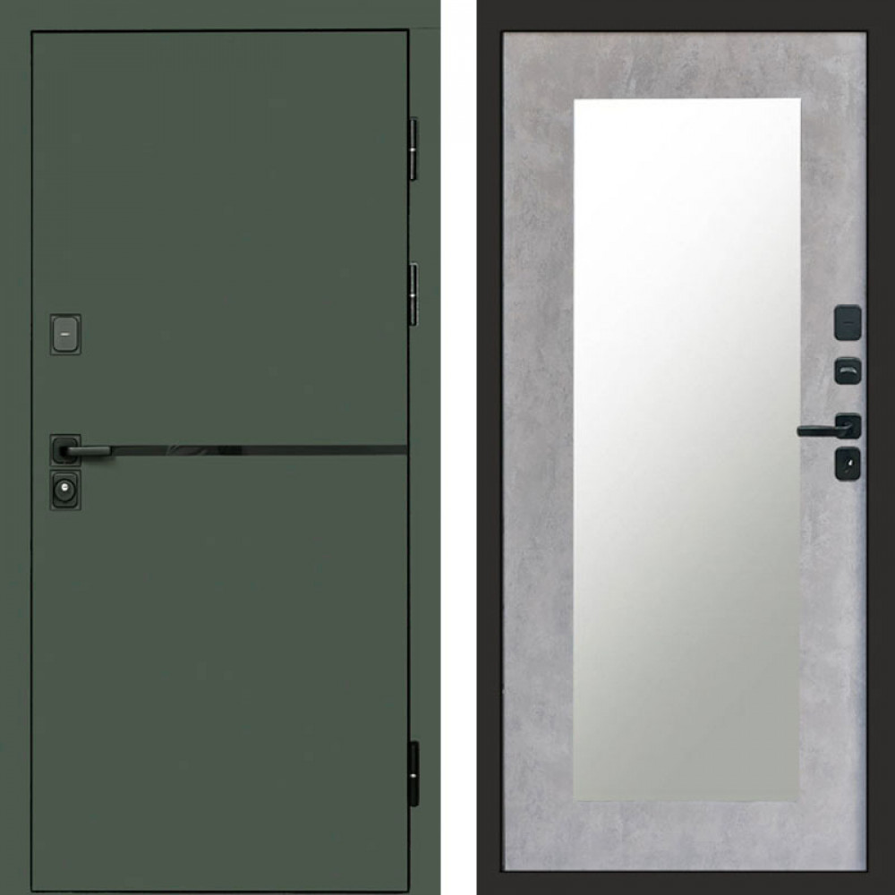 Входная дверь Termo-Door Тренд Грин - Зеркало Триумф бетон светлый