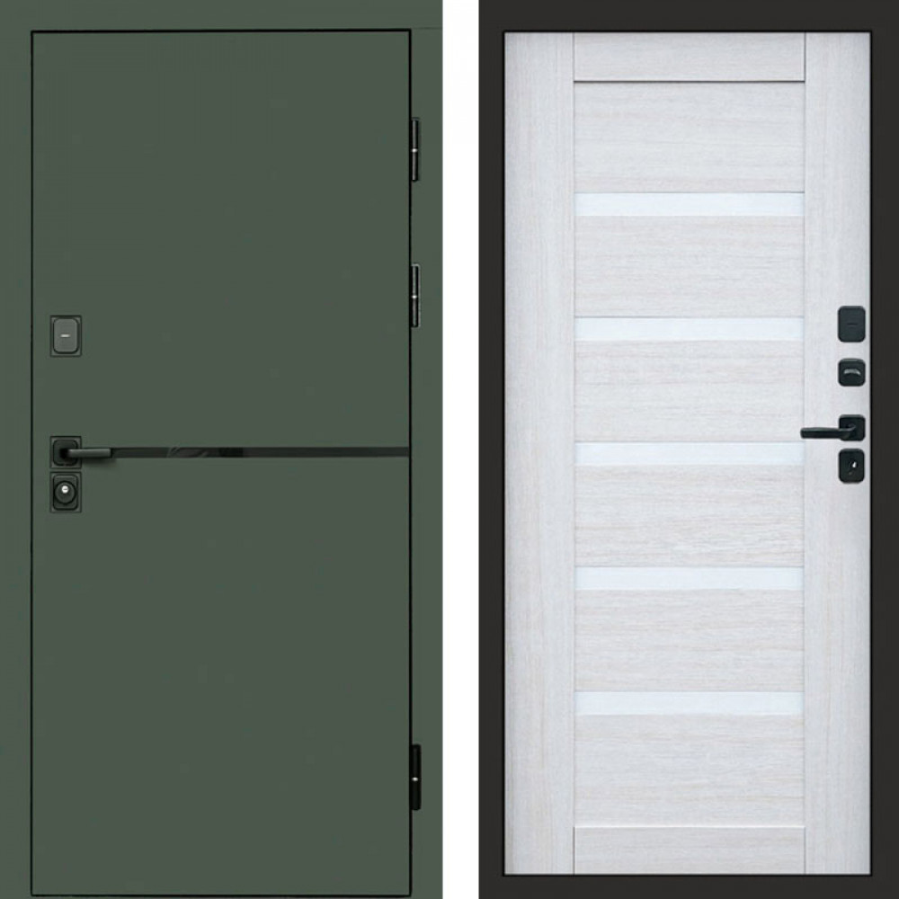 Входная дверь Termo-Door Тренд Грин - Зеркало Триумф Царга лиственница 4500 / 5500