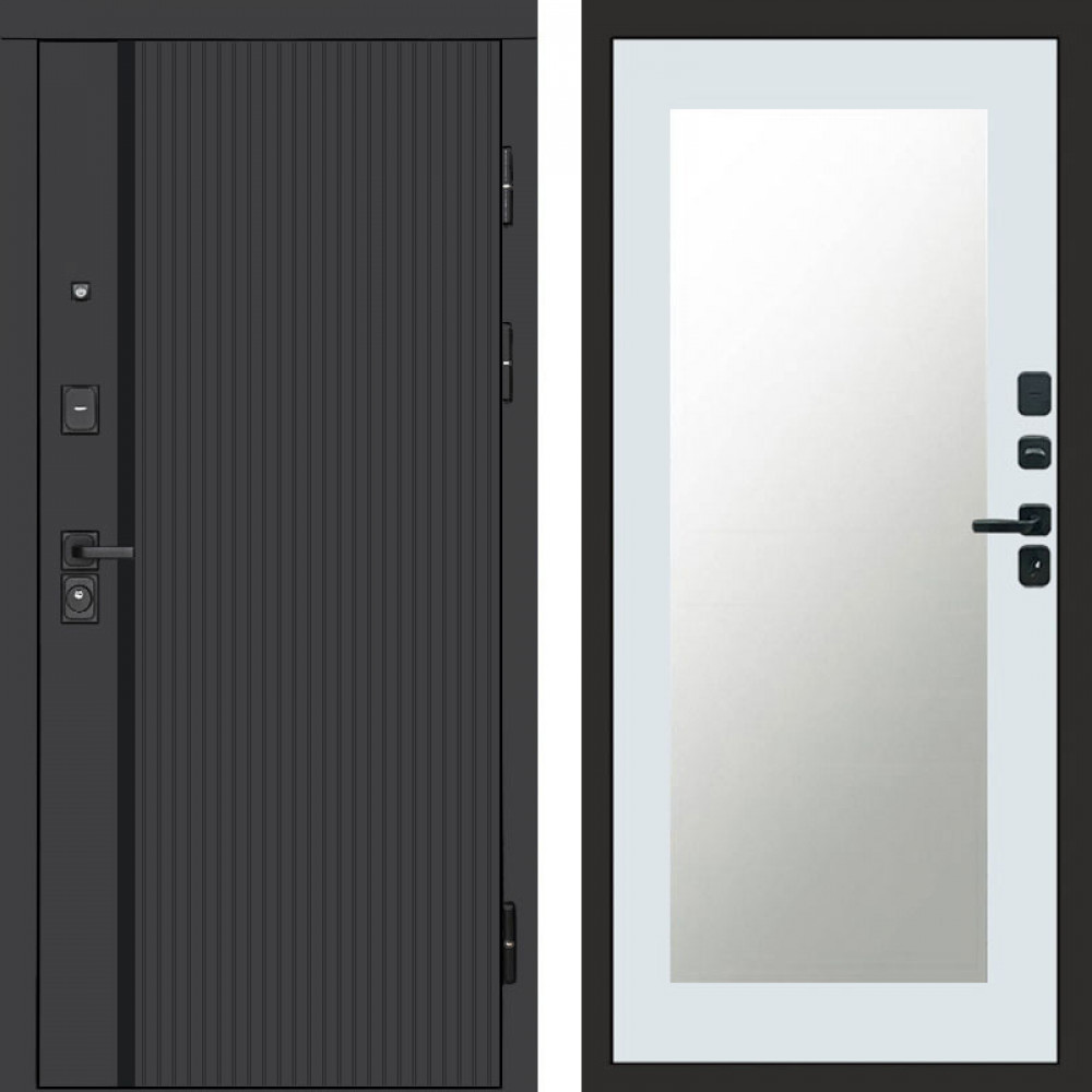 Входная дверь Termo-Door Урбан Black - Зеркало Триумф Белый софт