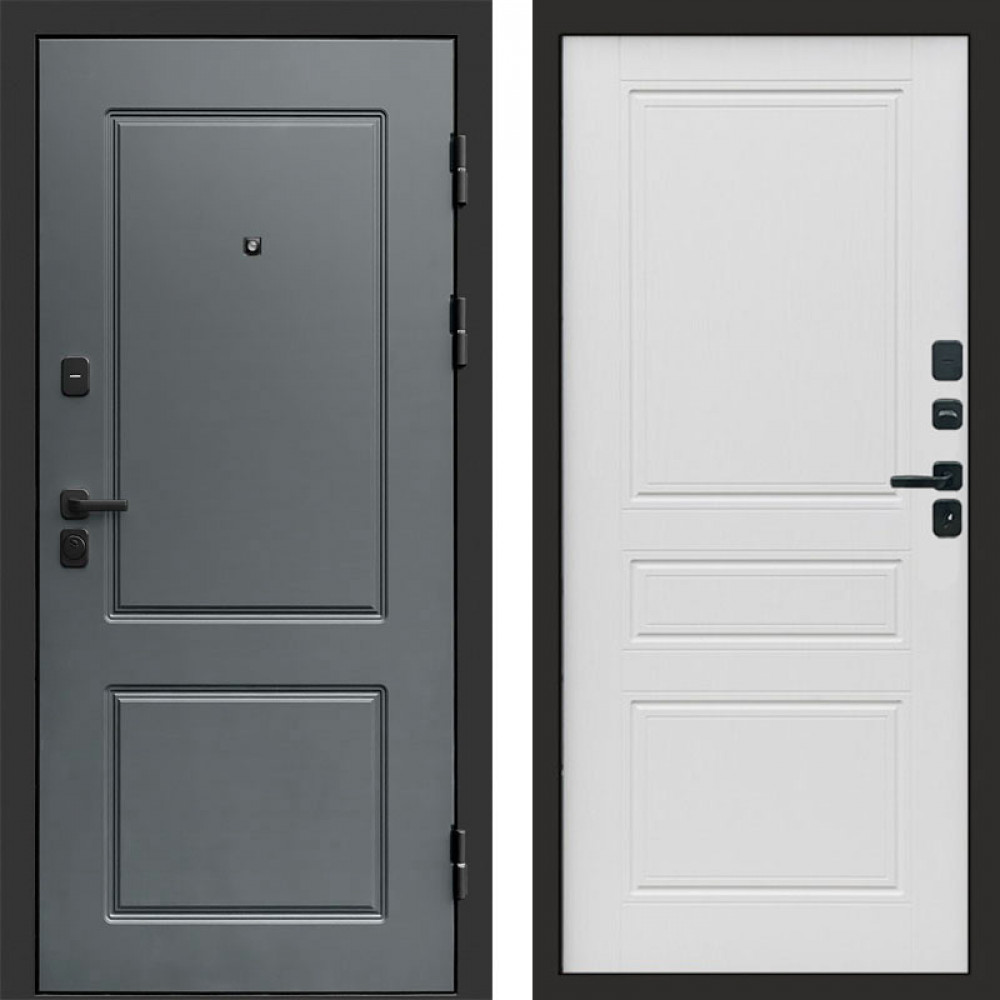 Входная дверь • Габаритные размеры: 2050x860 мм, 2050x960 мм • Металл 1.8мм. Черная шагрень • Внешнее покрытие: МДФ 12 мм. • Толщина полотна: 115 мм. • Толщина коробки: 120 мм. • Короб закрытого типа, утепленный • Уплотнитель: 3 контура • Два вертикальных ребра жесткости • ЭЛЕКТРОННЫЙ ЗАМОК НА ВЫБОР • Замок дополнительный: Гардиан 6001 • Врезная броненакладка • Пазы на коробке под доборы • Независимая задвижка есть • Фурнитура ЧЕРНАЯ