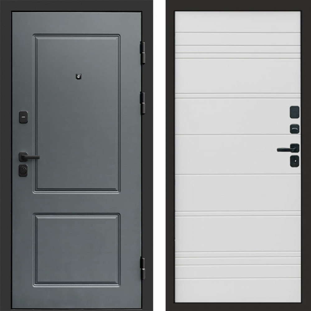 Входная дверь • Габаритные размеры: 2050x860 мм, 2050x960 мм • Металл 1.8мм • Внешнее покрытие: МДФ 16 мм. • Толщина полотна: 115 мм. • Толщина коробки: 120 мм. • Короб закрытого типа, утепленный • Уплотнитель: 3 контура • Два вертикальных ребра жесткости • Замок основной: Гардиан 6211 с блокировкой язычка • Замок дополнительный: Гардиан 6001 • Врезная броненакладка • Пазы на коробке под доборы • Независимая задвижка есть • Фурнитура Хром